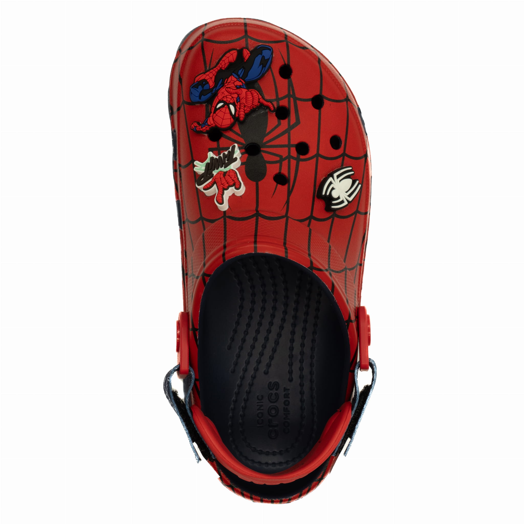 Cholewka: Jednoczęściowa pianka Croslite™ — lekka, wodoodporna i łatwa w czyszczeniu; otwory wentylacyjne i przypinki Jibbitz™ z motywem Spider-Mana.