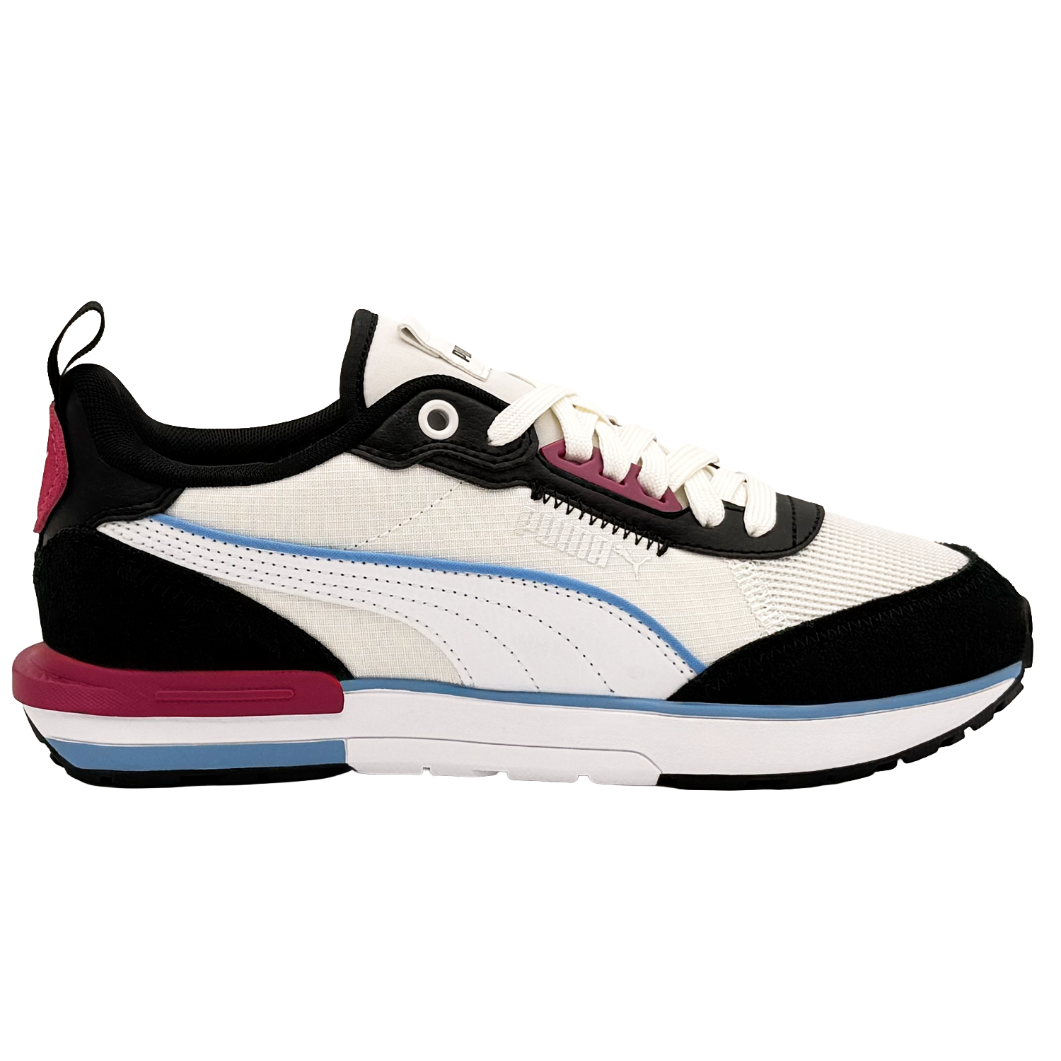 PUMA R22 38346232 to lekkie sneakersy inspirowane klasycznym stylem biegowym, które świetnie sprawdzają się w codziennym użytkowaniu. Model wyróżnia się dynamiczną sylwetką oraz nowoczesną, stonowaną kolorystyką opartą na bieli z różowo-czarnymi detalami. To uniwersalne obuwie łączące sportowy charakter z miejskim komfortem — idealne do casualowych i aktywnych stylizacji.