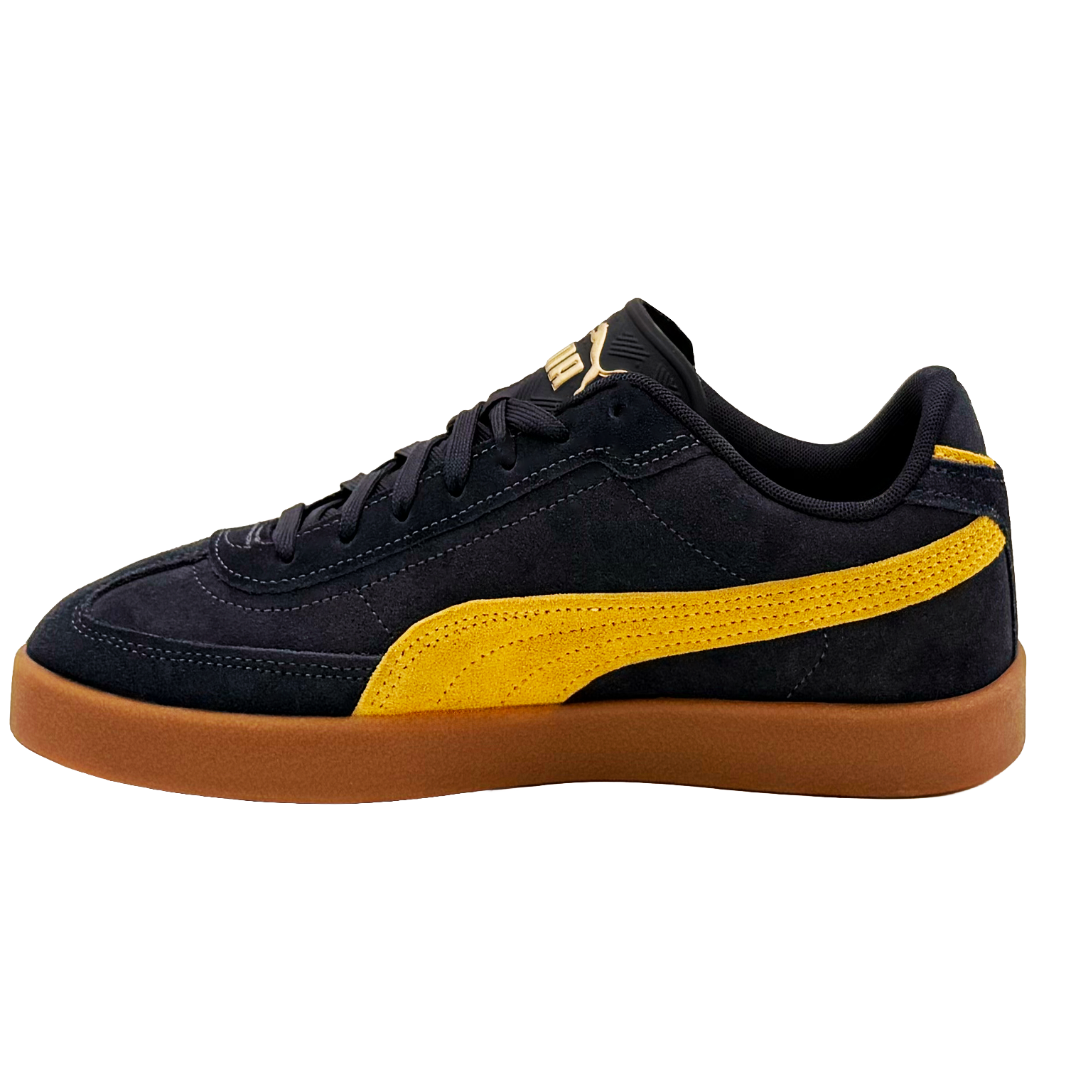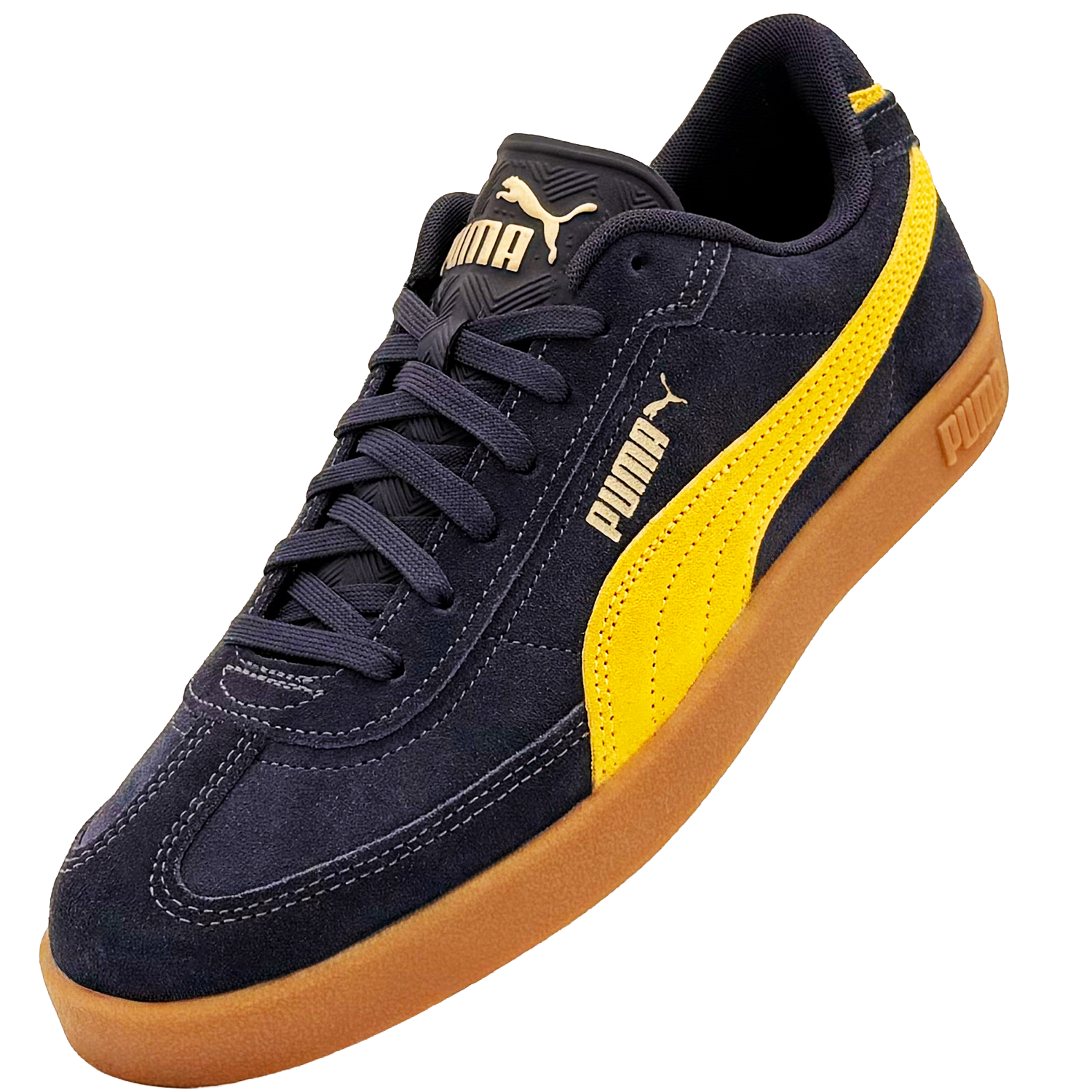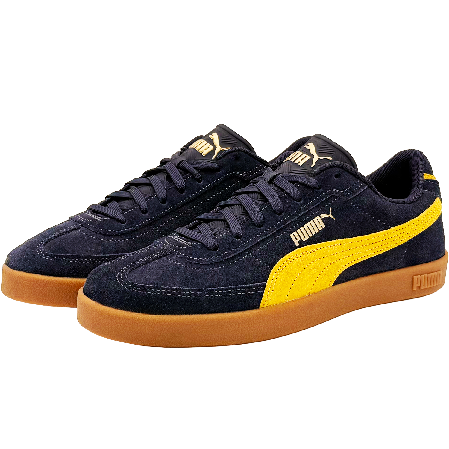 PUMA Club II Era Suede 40071702 to sneakersy inspirowane klasycznymi modelami z archiwów PUMA, które łączą ponadczasową estetykę z komfortem codziennego użytkowania. Model utrzymany jest w stylowej kolorystyce granatu z żółtymi akcentami, co sprawia, że doskonale wpisuje się zarówno w casualowe, jak i streetwearowe stylizacje.